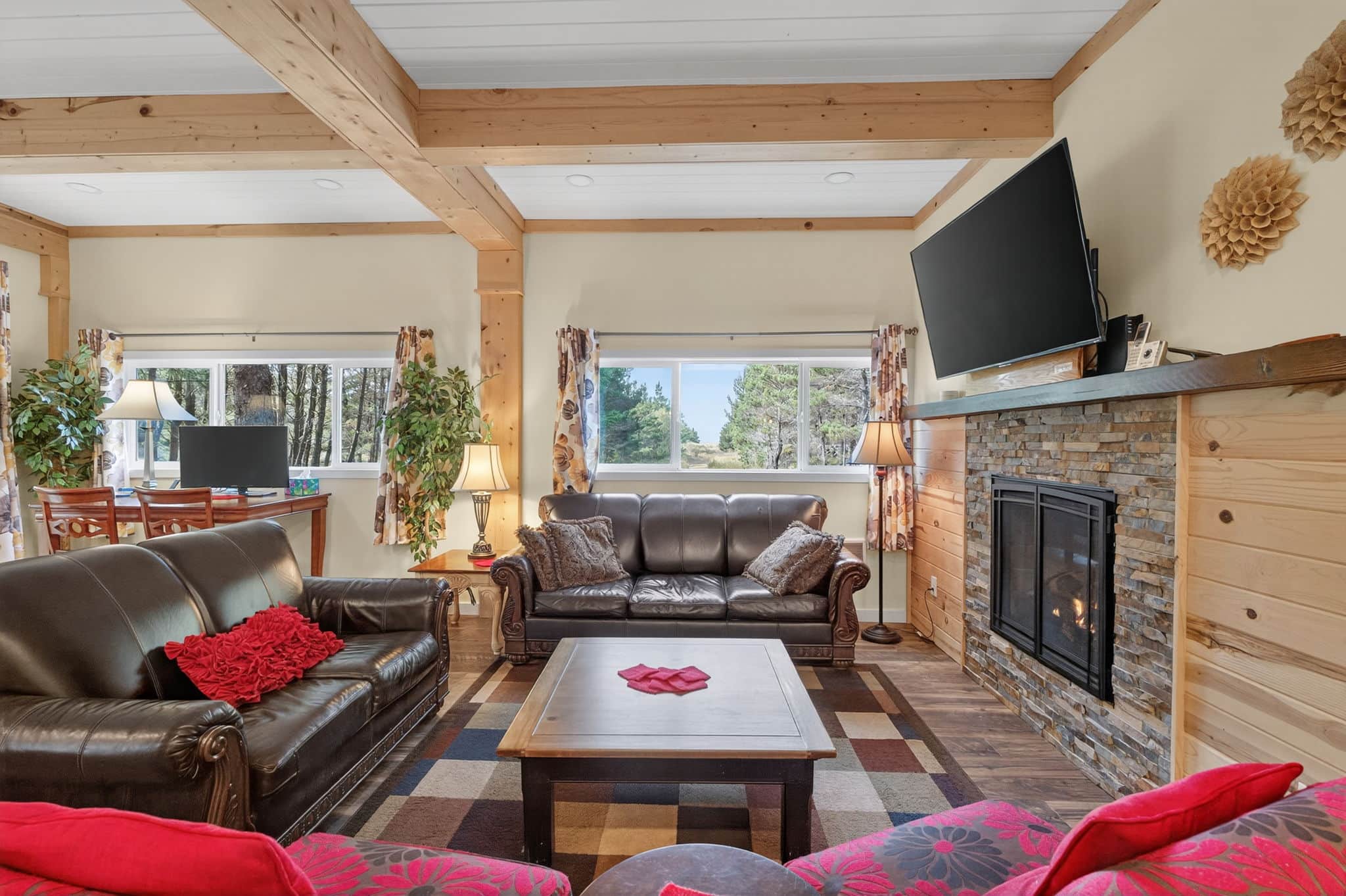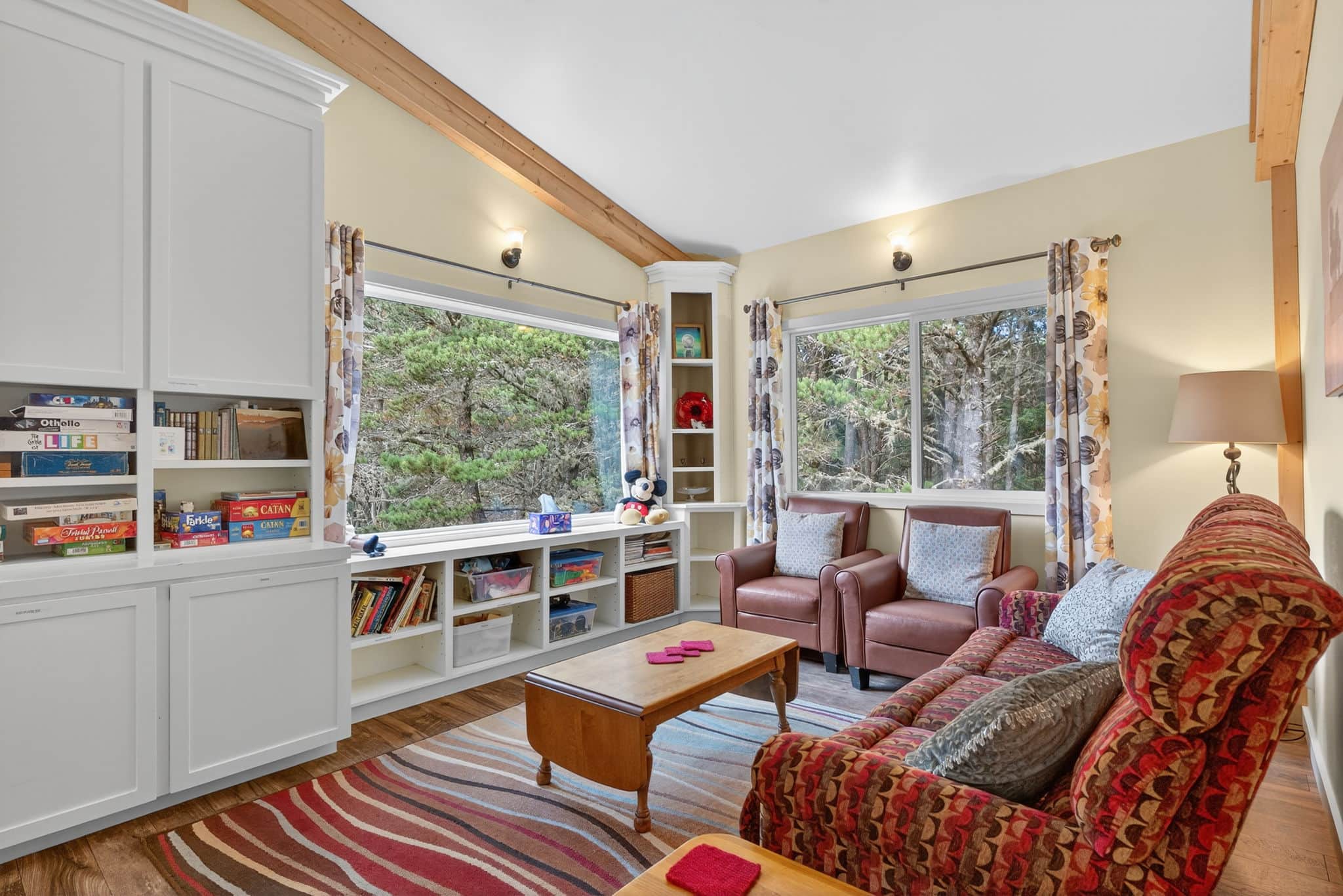 General: There are games, puzzles, books, toys…. And a piano and music stand! (The music stand should be in the upstairs closet between the larger bathroom and the upstairs bunkroom.) We have propane fireplaces and smart TVs in both the upper and lower living areas. The upper TV has a DVD player inside the cabinet to the left of the TV.