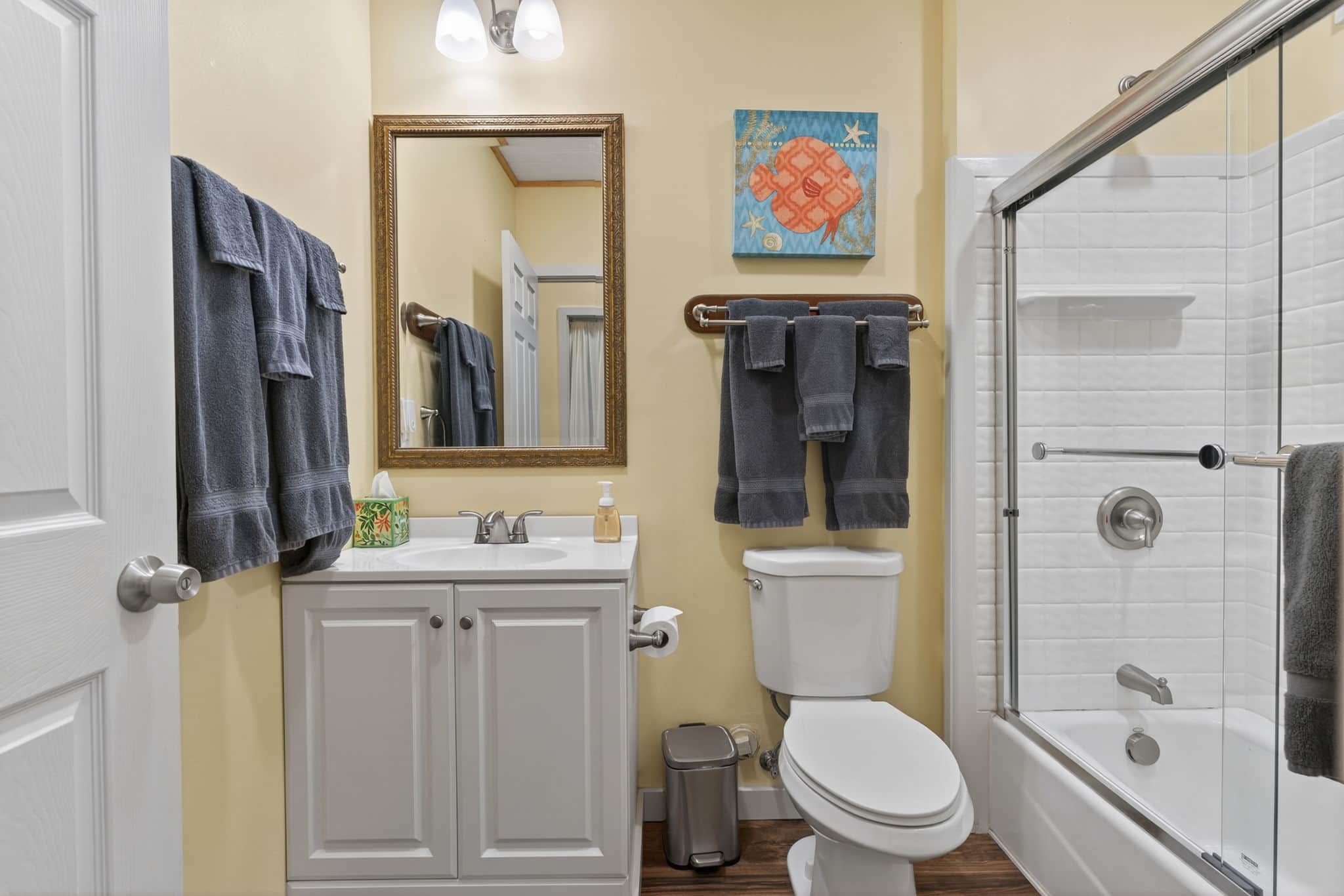 For outside: There’s running hot and cold water for the hose on the north side of the house for washing sandy feet and toys off or cleaning fish—please leave no trace though! We have sand toys, beach towels, some lawn chairs… There’s a corn hole set in the outdoor storage bin on the east side of the house also.